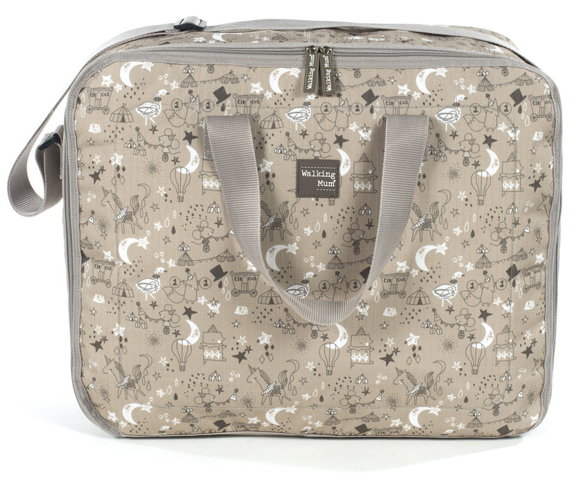 Valigia da portare in clinica o in ospedale e dare il benvenuto al bambino della collezione Circ di Walking Mum. Questa borsa è appositamente progettata per trasportare tutto ciò di cui la mamma e il bambino hanno bisogno durante il loro soggiorno in ospedale. Forma rettangolare, cerniera integrale e diverse maniglie. Design allegro e urbano. Realizzato in materiale resistente alle macchie e all'acqua.
