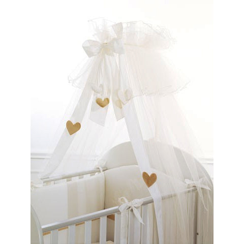 Il Velo Cremino Baby Expert Trudi e compreso di asta da applicare al lettino. Il tulle è un tessuto creato da fili che si intrecciano in modo