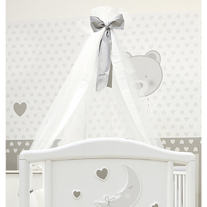 Il Velo Pali andegrave; dotato di asta da applicare al lettino. Il tulle andegrave; un tessuto creato da fili che si intrecciano in modo molto aperto, creando una rete trasparente ma stabile.