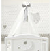 Tessuto 100% cotone con applicazioni ricamate. Asta con velo in coordinato.