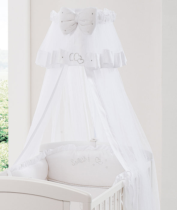Il Velo per lettino con asta Billo e Pallina Smack Cristalli è realizzato in Cotone 100% naturale e strass applicati. Il velo ideale da abbinare alla linea smack cristalli. Per la stanza del tuo bambino crea un ambiente elegante e prezioso, con la qualità dei materiali e la cura per le rifiniture che contraddistinguono i prodotti Billo e Pallina. Smack Cristalli è la linea che impreziosisce la cameretta con applicazioni di strass per dare luminosità e calore. Comprensivo di asta regolabile in altezza.